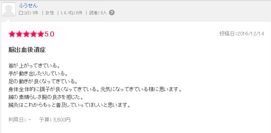 鍼の良さや腕の良さを感じました。鍼灸はこれからももっと普及してほしいと思っています。