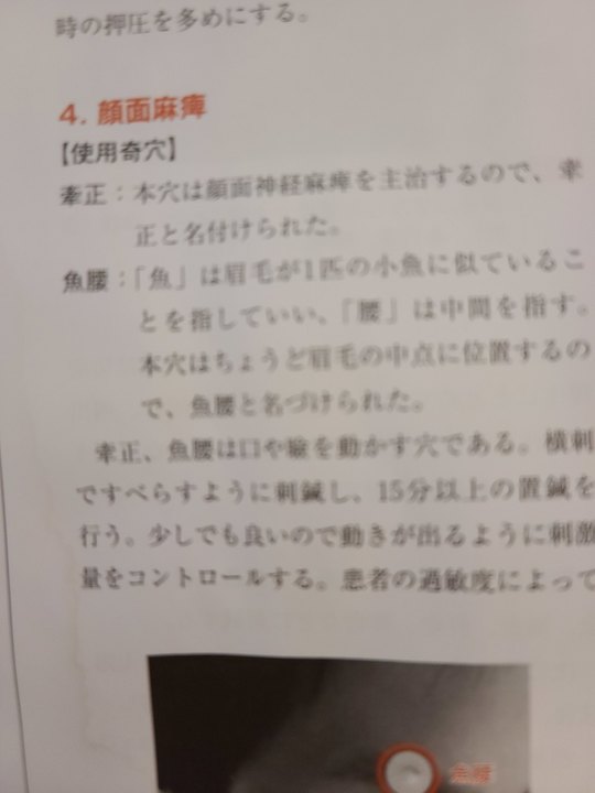 特効穴としては耳裏にあるツボは効果的であります。目の開閉には手足のツボは非常に有効です。中国上海において鍼灸臨床を研修していたときに最も驚いたのは鍼灸に来られる顔面神経麻痺と脳卒中後遺症の患者さんが異常に多かったことです。中国の先生に聞くと鍼灸治療は薬の副作用もなくゆっくりであっても確実に改善していくことを患者さん自身がよく知っているので顔面神経麻痺ではまず鍼灸をするらしいです。薬も漢方薬もしないようです。鍼のみでしていました。中国では漢方薬と併用するケースが多いのに顔面麻痺には鍼のみでいいという見解があるようです。
