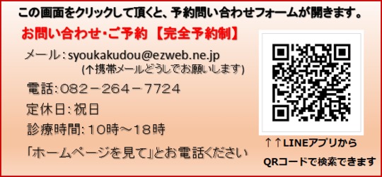 また、松鶴堂の予約がいっぱいの場合でも分室Anzuや分院袋町のヘルティカではお受けできるケースがあります。また、初回に限りヘルティカの予約も松鶴堂への連絡で可能になっておりますのでご連絡ください。