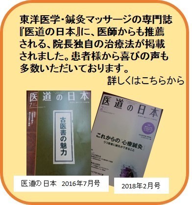 鍼灸雑誌に当院の記事が掲載されました。強い効果を出すといわれる奇穴に関しての私論を述べさせていただきました。まだ董氏楊氏奇穴に出会う前のことで、強い縁を感じさせる投稿となりました。