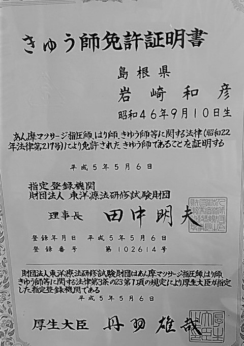 皆さん、はじめまして、松鶴堂(しょうかくどう)鍼灸院の院長 岩崎和彦 です。
