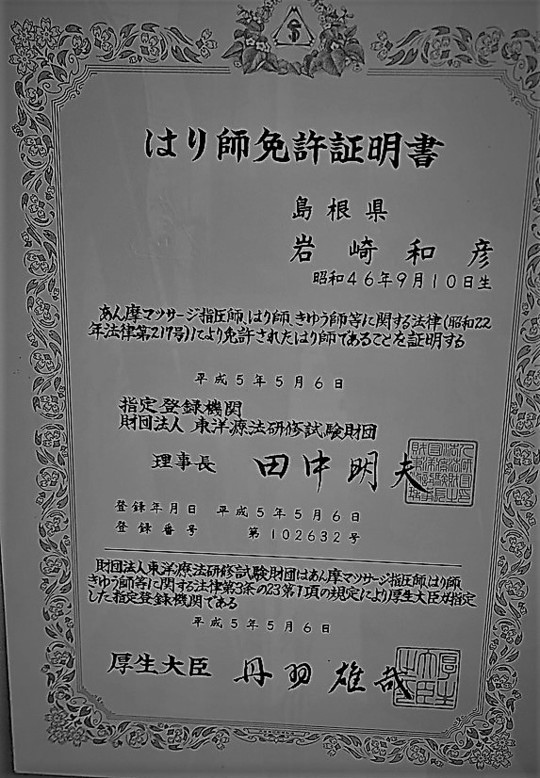 鍼灸学士(日本の明治鍼灸大学卒業して取得)