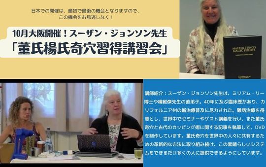 董氏楊氏奇穴を学べるチャンスは非常に少なくなります。ぜひ10月に開催されますスーザン先生による鍼灸セミナーに参加されますことを強くお勧めいたします。